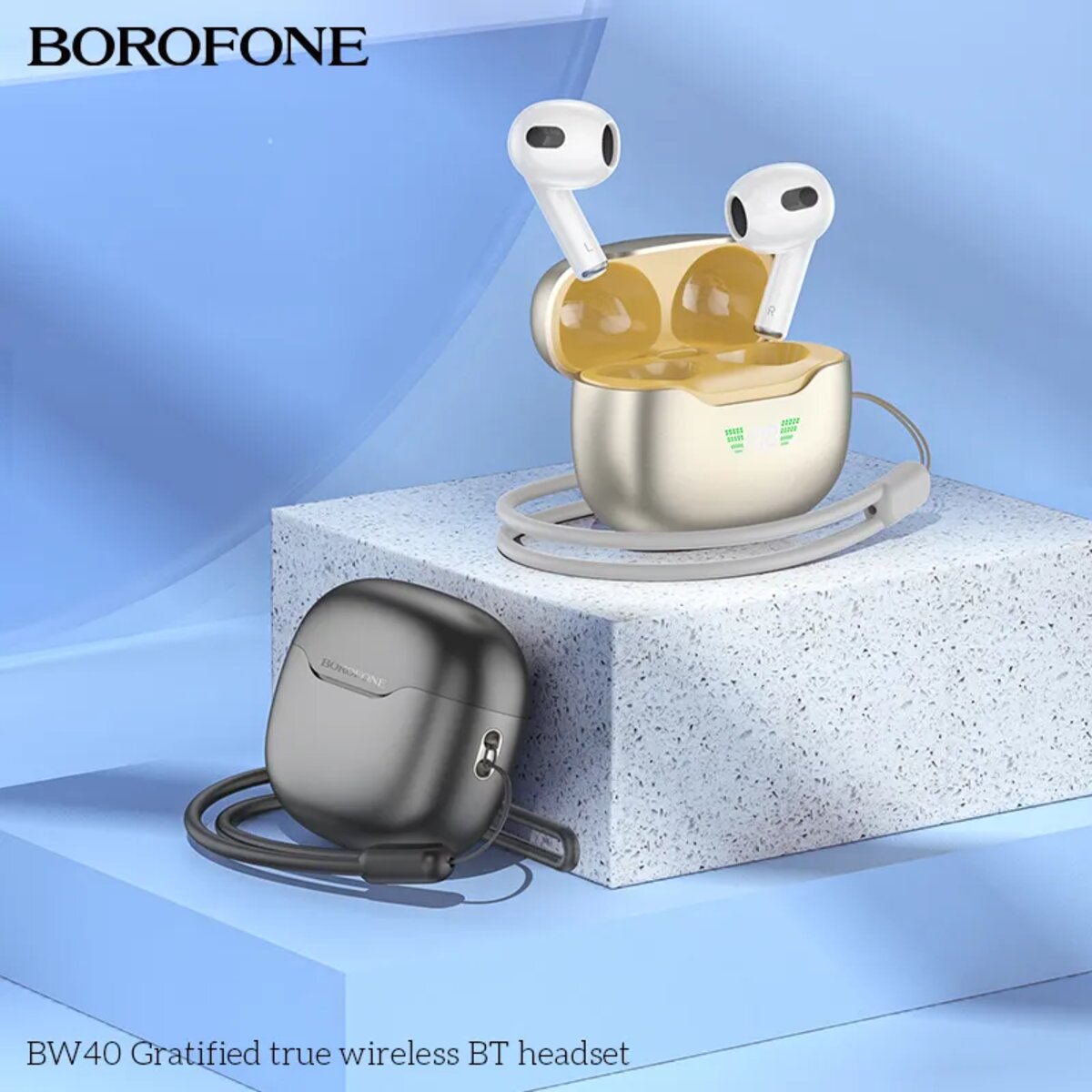 BOROFONE BW40 Gratified true wireless BT headset Champagne Gold — бездротові Bluetooth-навушники з відмінним звучанням та функцією активного шумопоглинання.